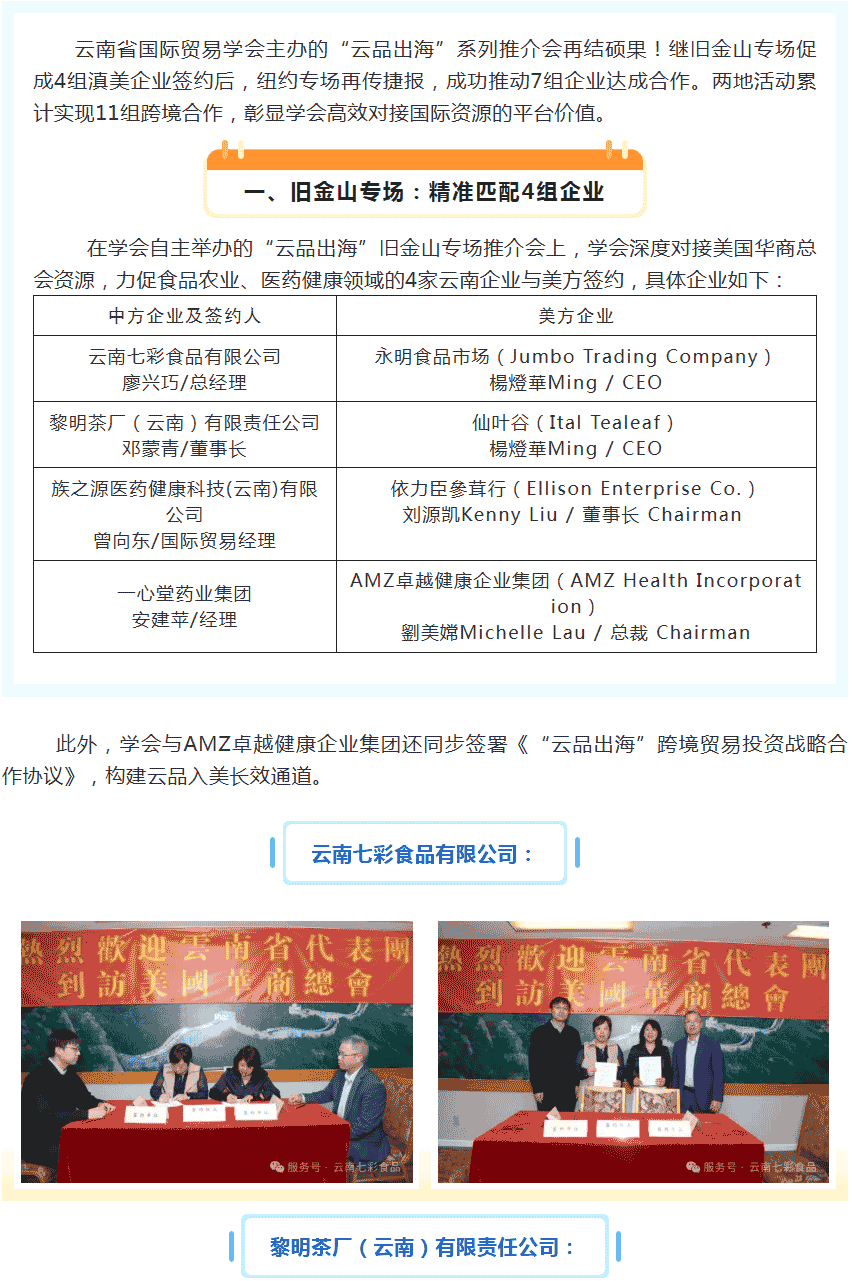 十一家!學會成功促成滇美企業簽約